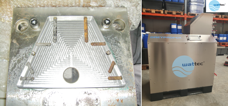 In the past, Druckguss Systeme AG had recurring, major problems with inadequate water quality and a high level of contamination in the cooling and temperature control circuits. This effect was exacerbated when the respective casting mold was used for an extended period in series production or was out of service for a certain period due to an overhaul. The deposits and corrosion led to clogged filters and pumps in the heaters. "The goal was to fundamentally tackle both of these problems. Above all, it was important to us to install a sustainable and efficient solution that would ensure we always have clean, ready-to-use die-casting molds," explains Mr. Mark Lewis, Project Manager, System Planning. To give the company the opportunity to experience the performance of the Dreyproper 4.2 for themselves, wattec GmbH initially provided the cleaning device as part of an extended test phase. This was completed after eight weeks with consistently positive results. This also demonstrated the advantage that, in this customer-specific case, up to twelve cooling channels can be connected simultaneously. The overall cleaning process was accelerated by up to 50 %, representing significant added value for the company. After just the first run, it was clearly evident that the Dreyproper 4.2 had removed almost all deposits and contaminants. Furthermore, the fluid flow rate was significantly increased, resulting in improved cooling performance in the die-casting molds.