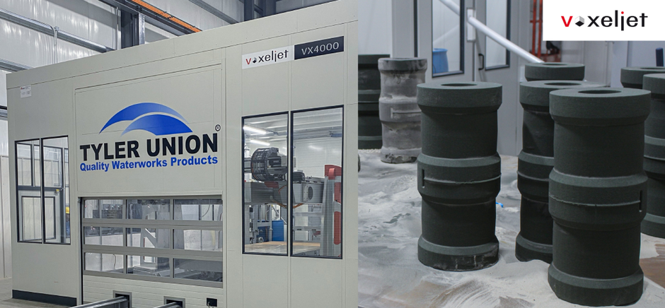 For over 100 years, Tyler Union has been a leading manufacturer in the waterworks industry, specializing in ductile iron fittings, joint restraints, and valve boxes. To enhance flexibility and reduce lead times in production, the company has integrated voxeljet’s VX4000 3D printing system, bringing greater efficiency and cost-effectiveness into its casting processes.