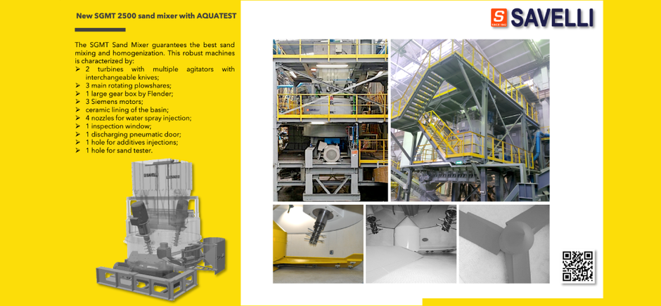 The Savelli SGMT 2500 sand mixer enables maximum efficiency in sand mixing and homogenization. The machine is designed to guarantee consistently high molding sand quality, enabling more precise castings while reducing scrap rates.