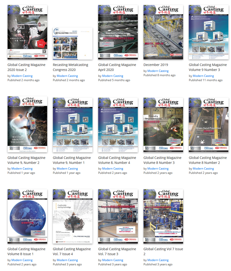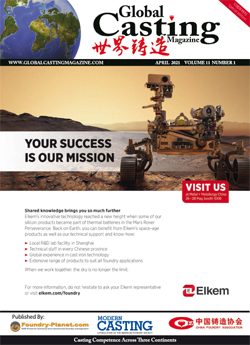 Global Casting Magazine is an international digital publication focused on the metalcasting industry. Through the partnering of FOUNDRY-PLANET.COM and the CHINA FOUNDRY ASSOCIATION, this resource reaches 80,000 metalcasters, including the leadership of the world’s largest communities in North America, Europe and Asia.